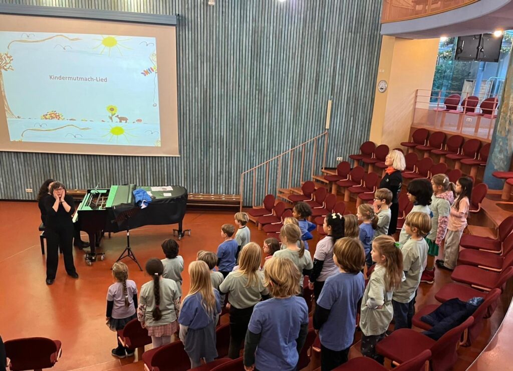 Auf Initiative unserer Flötenlehrerin Frau Gründer haben in diesem Jahr einige Kinder der Klassen 3 und 4 am großen Auftritt der Grundschulen an der Chorbiennale 2025 teilgenommen. Mit 3 wunderbaren Liedern haben die Kinderstimmen zu Frieden, Miteinander und Respekt füreinander aufgerufen. Auch wenn das Wetter uns ganz spontan von der großen Bühne auf dem Katschhof auf die kleine Bühne im Krönungssaal geschickt hat (puh, war das eng und heiß!), so hat man gerade in diesem Moment gemerkt, wie spontan und flexibel die Kinder und Verantwortlichen in solchen Situationen handeln: die Sing – und Auftrittsfreude lassen wir uns von ein paar Regentropfen nicht nehmen! Danke an alle, das war großartig zu sehen und vor allem zu hören!