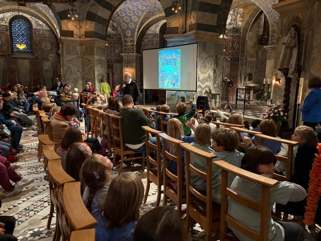 Am Sonntag hat unser Schulchor im Dom gemeinsam mit Kindern der Domsingschule eine Lesung von Jochen Till aus seinem Buch „Die höchstfamose Zooschule“ mit fetzigen Songs begleitet, wie z.B dem Lied
